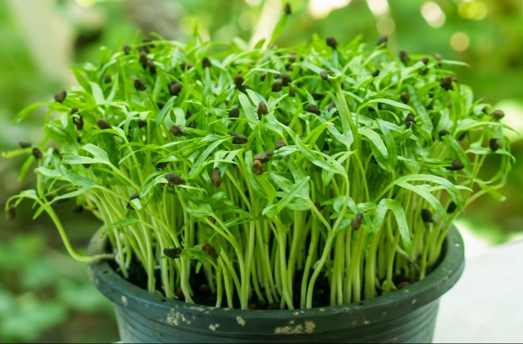 Unlike sprouts, microgreens are grown in clean mediums like cocopeat or jute, making them safer, cleaner, and mold-free.
